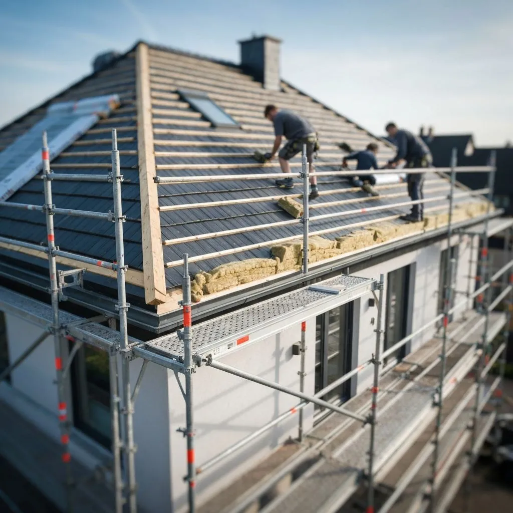 Koordinierte Ausführung aller Gewerke – von der Dämmung bis zur Heizung – mit regelmäßigen Updates.