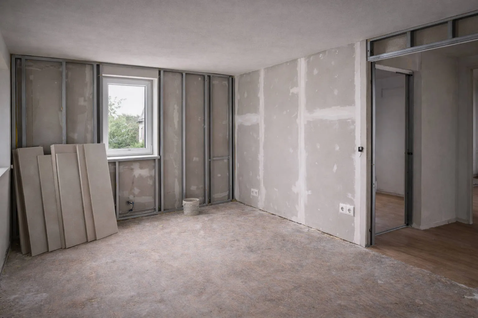 Komplette PV-Dachmontage durchgeführt, Rückbau im EG, neuer Trockenbau und Bodenbelag.